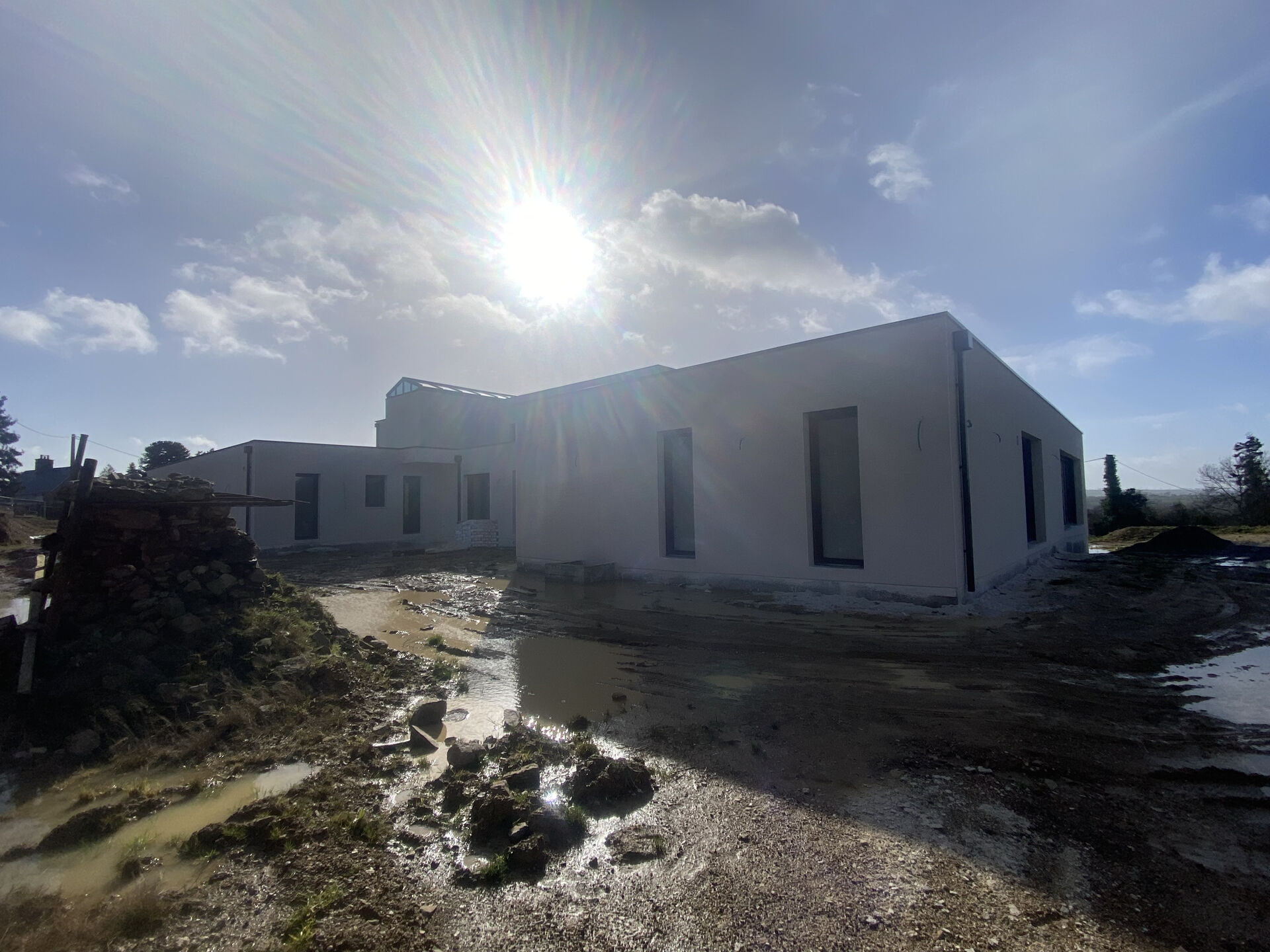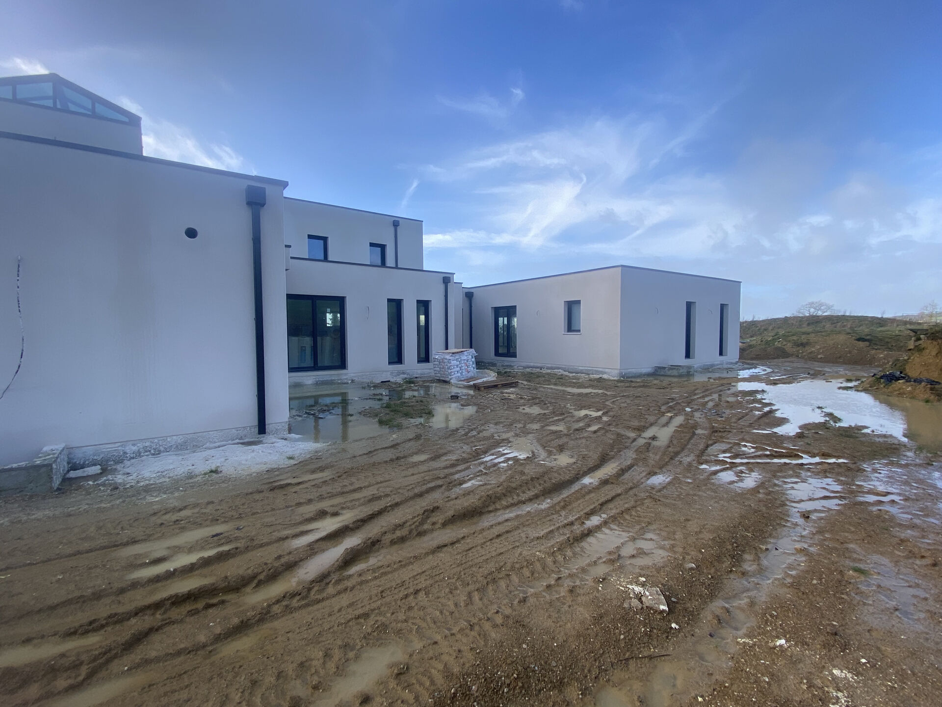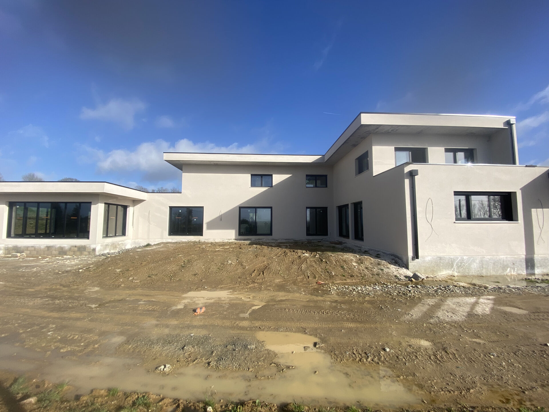Sur certaine parties des façades va être posée des parement pierre pour rendre à cette maison un aspect beaucoup plus moderne et cassé la continuité de la teinte blanche pour un aspect Esthétique plus raffiner.